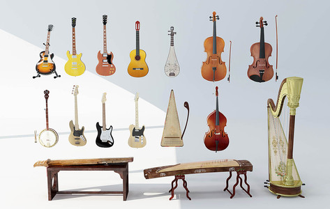 Z15-0510现代小提琴吉他古筝竖琴乐器组合