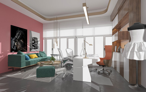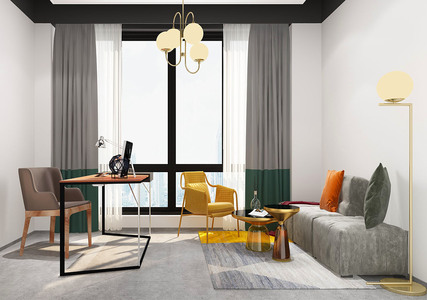 Z21-0417创客办公共享办公休闲等后区沙发茶几吊灯玄关柜会议桌椅