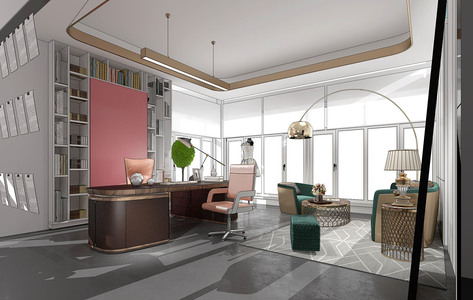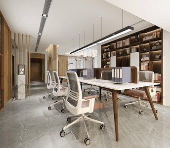 Z22-0417开敞办公室办公区书柜桌椅摆台