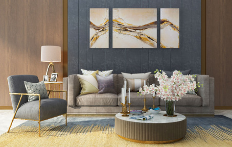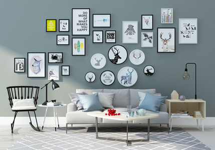 Z07-0506现代北欧客厅沙发茶几挂画组合