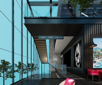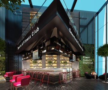 H05-0507现代酒吧娱乐会所酒吧台吧椅子工业风楼梯间