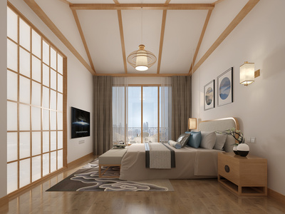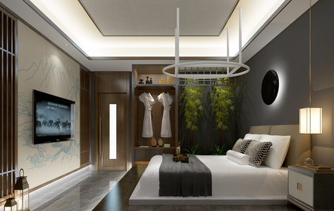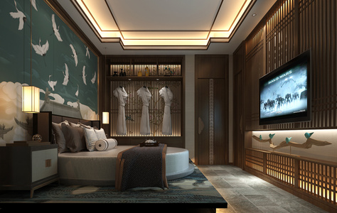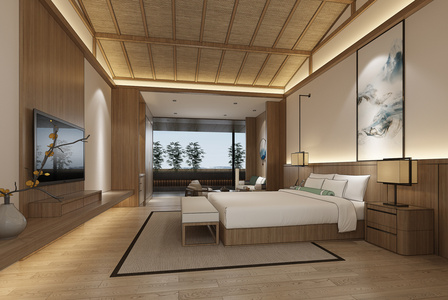 H03-0426新中式东南亚酒店客房大床房