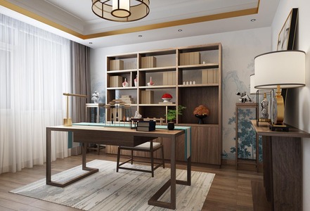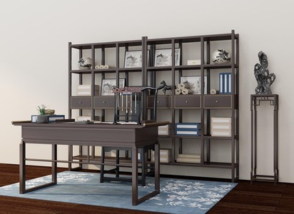 Z06-0402新中式书房书桌椅书柜花瓶
