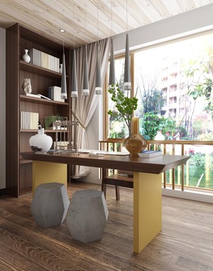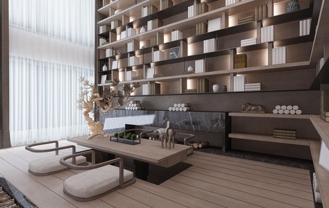 Z04-0402新中式茶室书房榻榻米书柜书籍