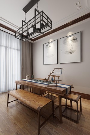 Z07-0402新中式茶室茶桌椅铁艺吊灯禅意茶具