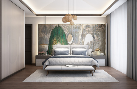 Z11-0404现代新中式卧室床床头柜藤编吊灯