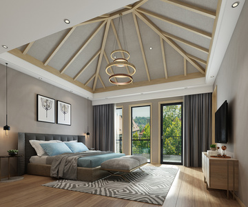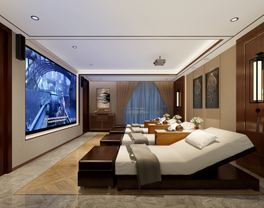 H18-0418现代东南亚卧室客房床电视柜