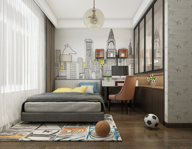 H16-0418现代儿童房男孩房写字台