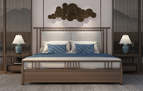 Z21-0215新中式双人床台灯组合