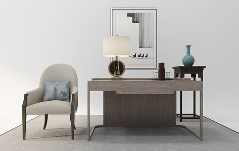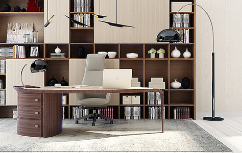 H18-0228现代总经理办公室办公桌老板台书柜组合落地灯办公椅