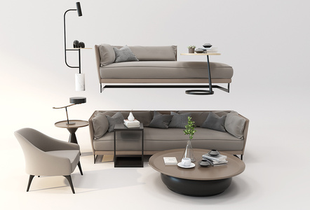 Z04-0212皮革布艺单人沙发组合休闲沙发