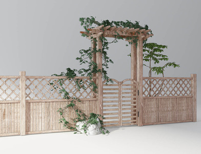 Z37-0411农家院篱笆墙廊架藤蔓山庄隔墙廊架民宿栅栏