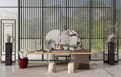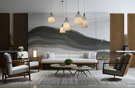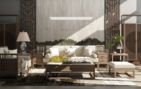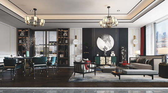 Z15-0615新中式客餐厅沙发茶几台灯摆台摆件餐桌椅书柜酒柜卧榻