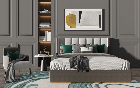 Z08-0617现代轻奢简欧式双人床椅子床头柜卧室