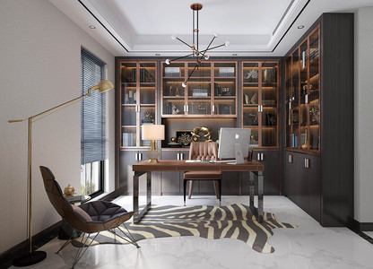 Z01-0408简欧式轻奢书房书柜摆件书桌椅苹果台式机