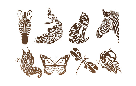 Z05-0713现代蝴蝶猫孔雀斑马头蜻蜓剪影图案墙饰