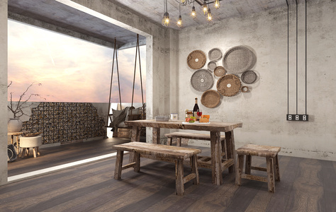 Z33-0710工业风民宿餐厅餐桌椅组合