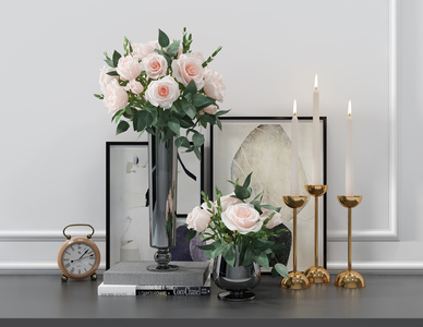 H35-0725玫瑰花玻璃花瓶烛台闹表摆件
