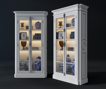 H40-0725欧式法式书柜装饰柜储藏柜青花瓷瓶将军罐