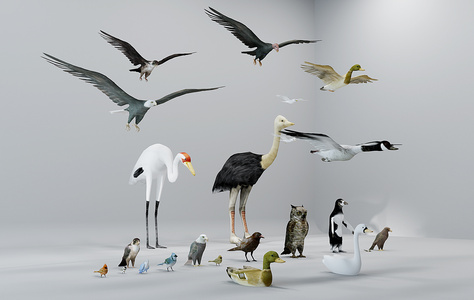 H11-0725动物飞禽飞行动物鸬鹚野鸭子猫头鹰天鹅老鹰鸵鸟