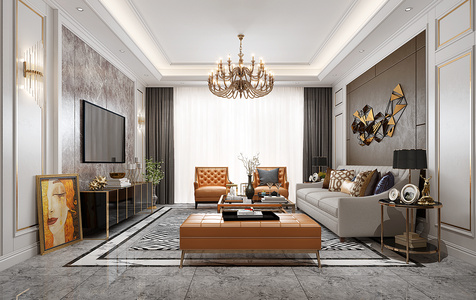 H14-0725后现代轻奢客厅沙发茶几单人沙发边几台灯吊灯电视柜墩凳踏