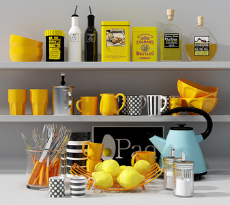 H15-0725现代厨房摆件饰品果篮水杯调料瓶子刀叉水壶