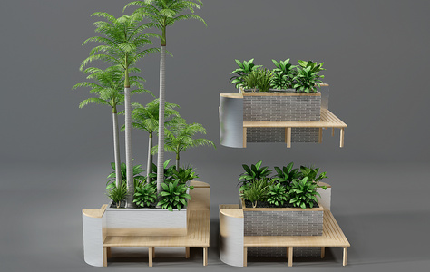 H13-0727现代商场景观座椅花池花坛植物椰子树
