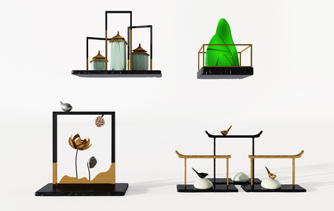 Z22-0709新中式金属石头雕塑摆件