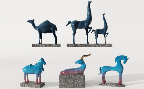 Z23-0709新中式蓝色陶瓷马鹿骆驼雕塑摆件饰品