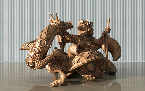 Z24-0709新中式日式狼与龙神兽雕塑