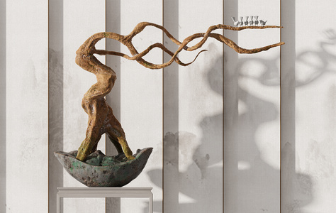 Z28-0709新中式圆形背景端景台玄关人物雕塑艺术品摆件干枝