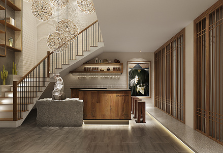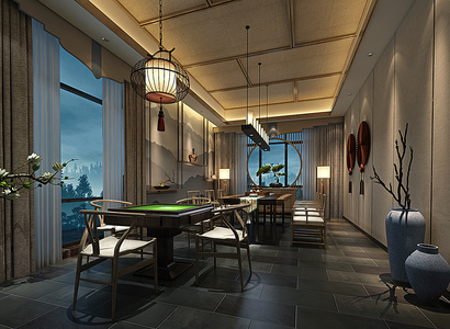 27-1104中式休闲娱乐室麻将桌陶罐干枝
