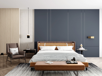 现代布艺双人床组合