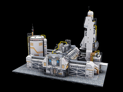 卡通宇宙飞船太空站场景