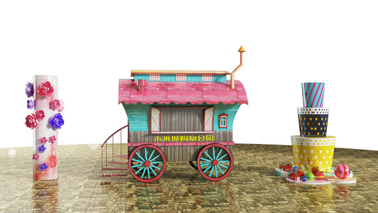 现代糖果美陈售卖亭摊位售卖车美陈