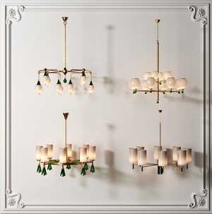 新中式轻奢玻璃灯罩多头吊灯