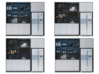 现代酒柜、冰箱、酒瓶