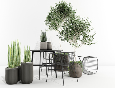 户外植物盆栽花盆,绿植铁艺桌椅