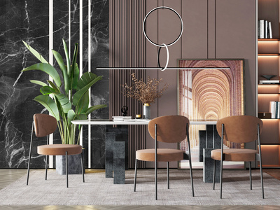 轻奢圆形餐桌椅