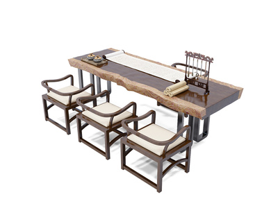 中式实木原木大板,书桌椅笔架,画案,卷轴画