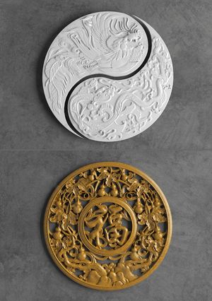 中式圆形福字木雕浮雕_墙饰_挂件