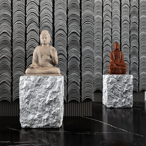 新中式佛像雕塑 石头墩子瓦片墙