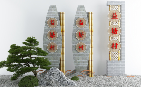 新中式农村乡村景观牌坊 景观小品 玄关造景石头松树 (1)