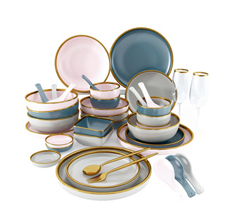 现代轻奢碗筷碟,红酒杯餐具 (1)