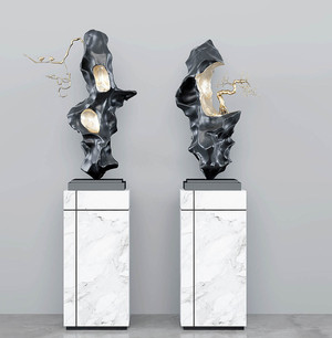 新中式石头松树雕塑,顽石雕塑摆件,摆台
