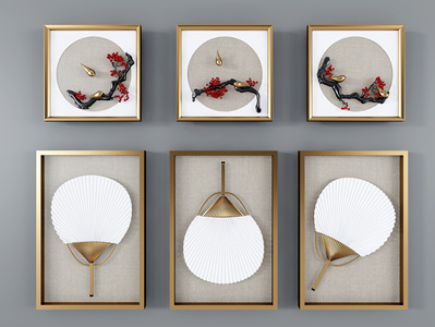 新中式树枝扇子装饰画,挂画立体画