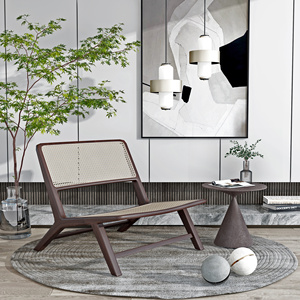 现代藤编单椅边几组合