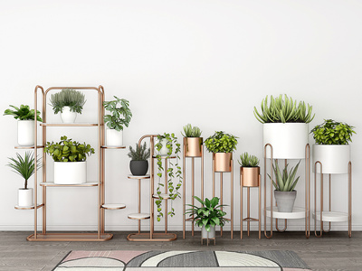 现代金属花架盆栽绿植,花盆,阳台绿植