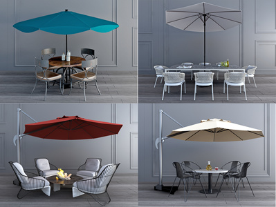 现代休闲桌椅组合_户外遮阳伞