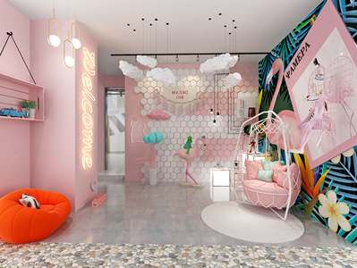 现代粉色森林系摄影棚
